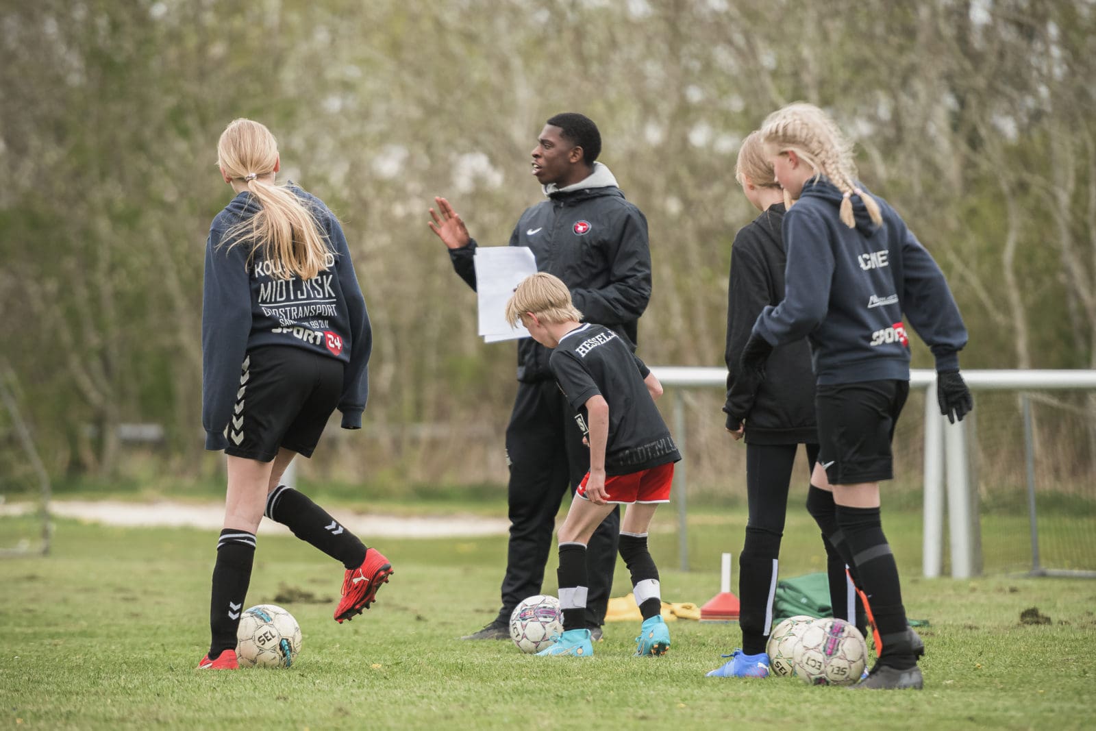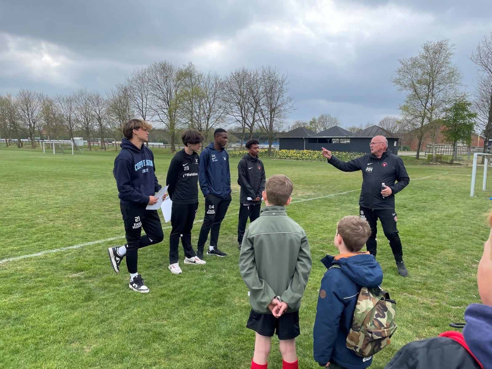 Der var gang i den fra start - fælles opvarmning blev sat i gang med alle børn og efterfølgende en masse skud på mål, træningsøvelser og kampe. De 4 unge fra FCM fik alle til at være med og der var fuld koncentration og masser af god fight. Vi håber, at I nød det lige så meget som vores børn - de havde en super god dag med en anderledes og sjov træning. Selvom det var lidt koldt for os på sidelinjen, var der bestemt ingen af spillerne, som frøs. Det var en flok trætte og glade børn, der lige nåede at få spurgt til, hvor gamle de var og om de spiller på landsholdet (hvilket de så alle gjorde)