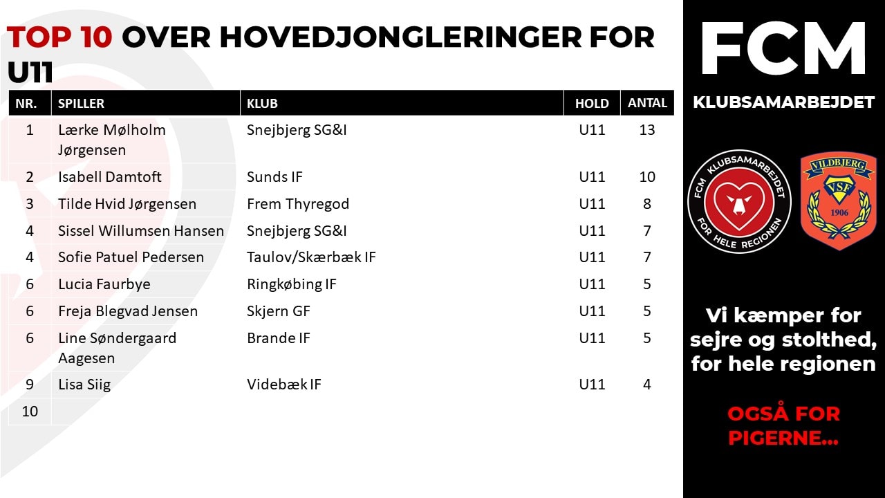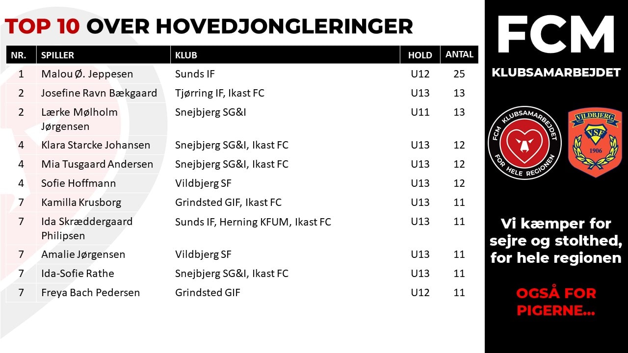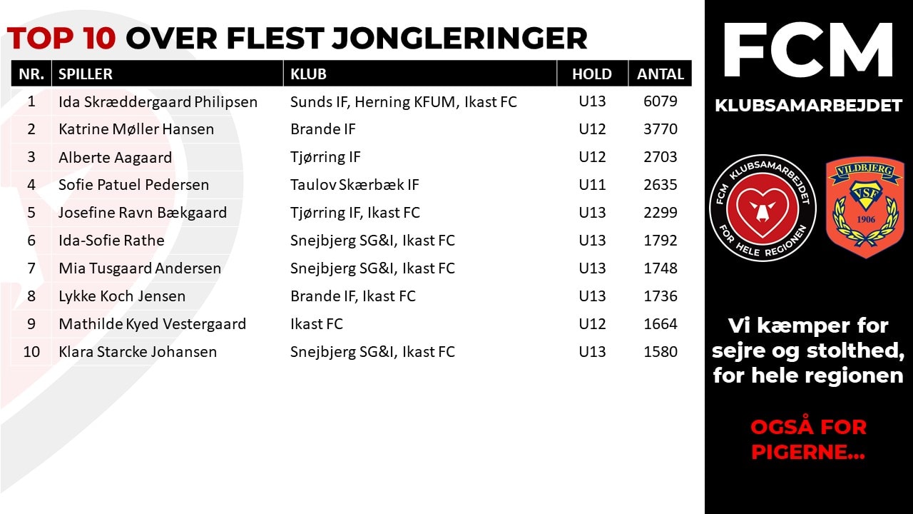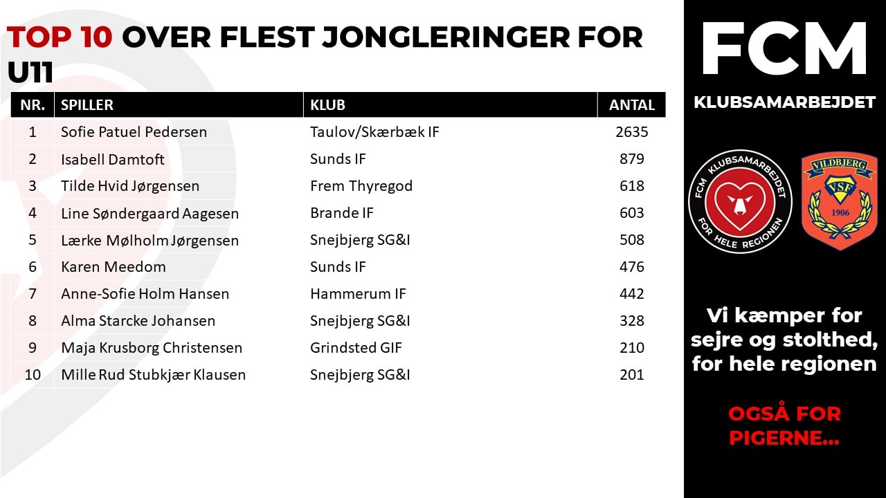 - Vi havde i trænerteamet en fornemmelse af, at der er blevet selvtrænet en del i jongleringer igennem hele sæsonen, men hold da op hvor pigerne gav den gas under Corona-nedlukningen. Det at jonglere er noget, som falder let for nogen og for andre er det noget, som det tager længere tid at knække koden på. Vi lod dog pigerne vide, at uanset hvor mange jongleringer, de kunne tage, så var det godt at selvtræne, og det skulle nok komme til dem, som på daværende tidspunkt havde mere svært ved det at jonglere end andre, fortæller leder af FCM Klubsamarbejdet, Tommy Jensen, der også er frivillig træner på FCM Pigelicens Center SYD.